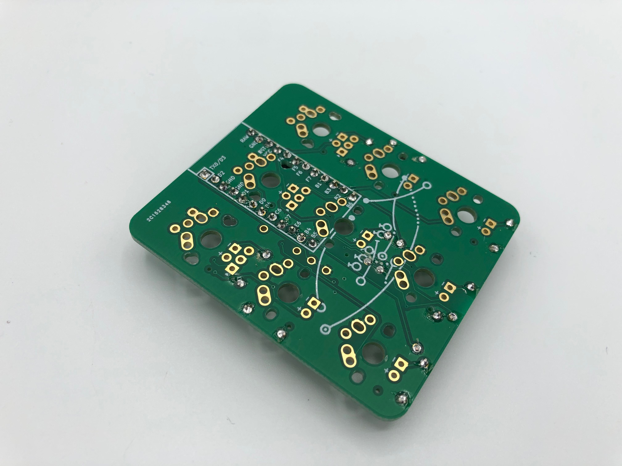 Clip the switch legs and plastic pieces of the 2 switches that sit on top of the Pro Micro, so they don't interfere with the Pro Micro.